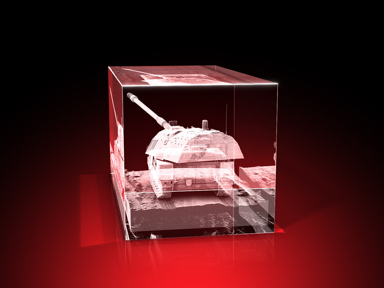 In Glas gelasertes detailgetreues 3D Motiv